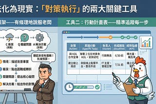 如何將策略轉化為成果?本期教你運用 SCQA 框架有邏輯地說服老闆爭取資源,並透過「行動計畫表」明確分工、設定 KPI 與時程。內含餐廳提升業績的實戰範例,助你有效推進專案。
